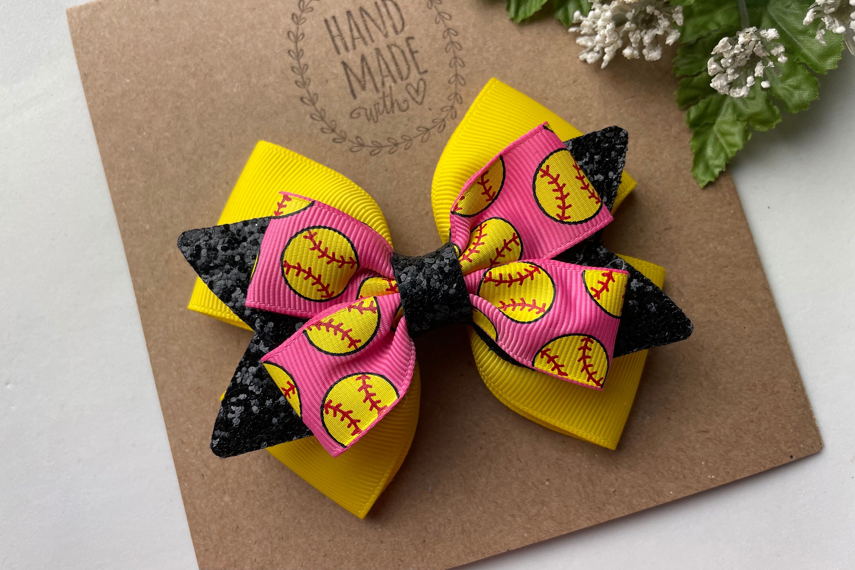 Softball Hair Bows Etsy