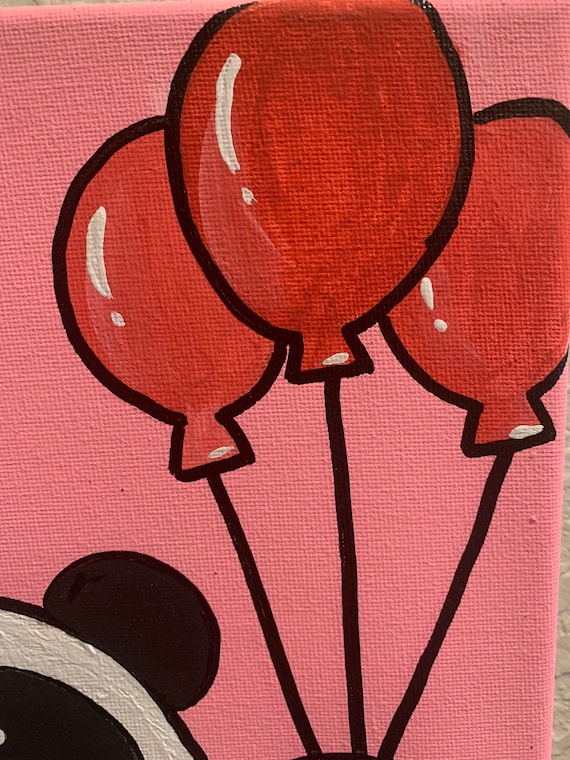 Panda And Balloons Acrylic Painting On Canvas Etsy